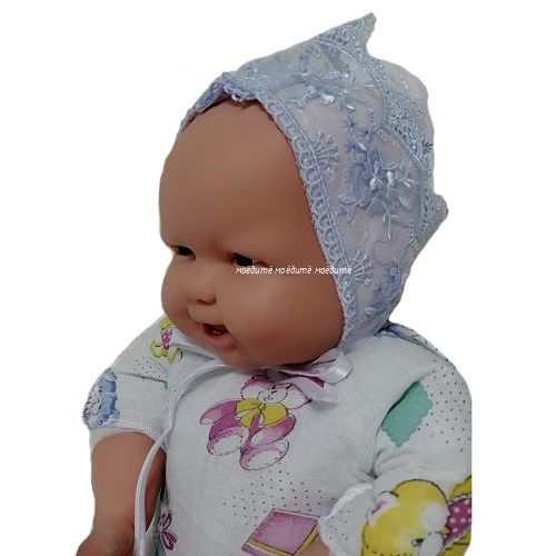 "МоёДитё" чепчик с гипюром нарядный белый с голубым Т196 "Вербена"