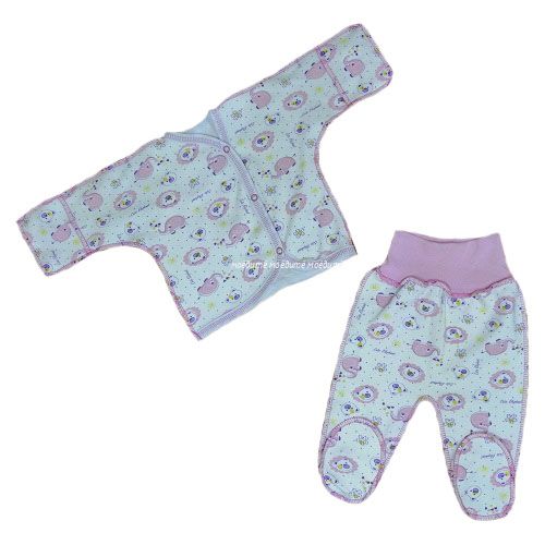 "МоёДитё" комплект распашонка + ползунки "Слоники" розовый "Гардения" КПИ020