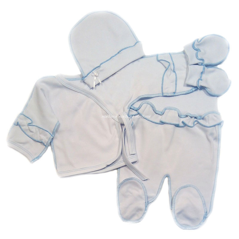 "МоёДитё" комплект на выписку "Лилия" КИ007 белый с голубым