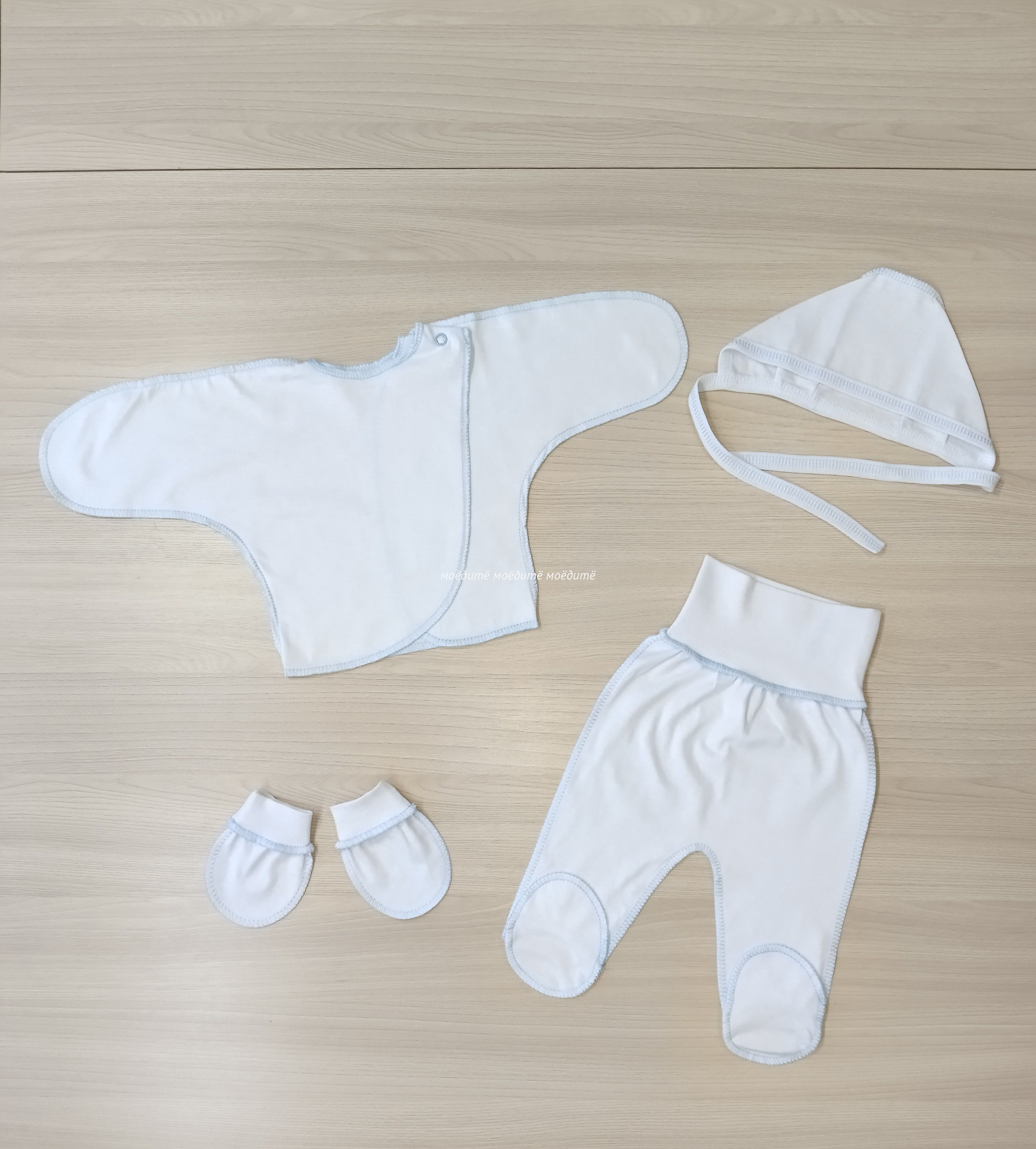 "МоёДитё" комплект на выписку из 4-х предметов белый + голубой КП025 "Магнолия"