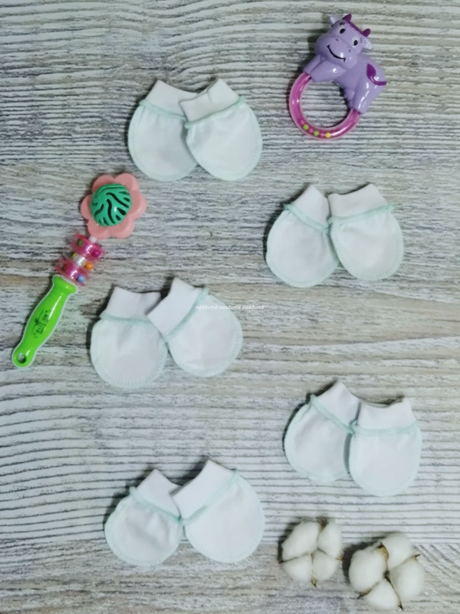 "МоёДитё" царапки кулирка белые + мята ЦК018 "Гардения" в Ноябрьске